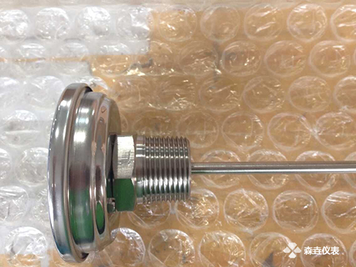 而森垚95%的雙金屬溫度計是出口的,做的比較多的螺紋都是1/4"NPT,1/2"NPT。這次的客戶要求的定制品,1"NPT螺紋,很大有木有,小編也是第一次看到,見下圖。