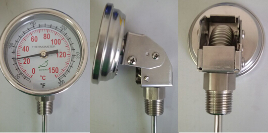 這個客人找到我們說要一款雙金屬溫度計,但是需要在不同的角度觀察表的溫度刻度,希望這個溫度計是固定安裝,但是希望表頭可以轉動,根據他的要求,我們推薦了萬向的雙金屬溫度計A300C這個型號的溫度計,具體的參數是這樣的: