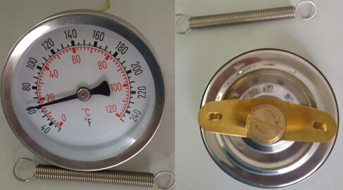 這個(gè)客人想測(cè)量水管上的溫度,但是普通的溫度計(jì)又不能使用,所以,森垚儀表就給他推薦了管道上最常用的單磁鐵表面溫度計(jì):