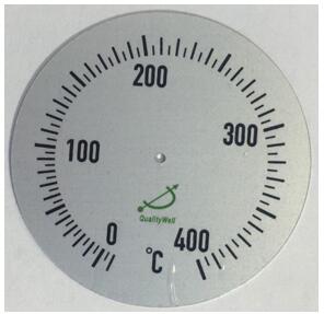 雙金屬溫度計表盤溫度范圍:‐80~550C, 特殊的溫度范圍和印刷根據(jù)客戶要求定制。