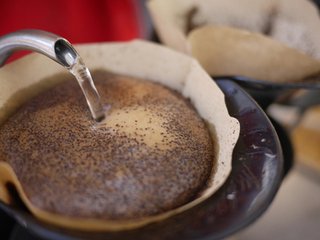 手沖咖啡的第一步就是用手搖磨豆機(jī)磨咖啡豆,然后將折好的濾紙放在濾杯中,將熱水均勻的沖在濾紙上,使濾紙全部濕潤(rùn),緊緊貼附在濾杯上,再將磨好的咖啡粉倒入濾杯中,輕輕拍平,于咖啡粉上均勻注水約咖啡粉克數(shù)的1.5倍水量,燜蒸,注水,萃取,得到的就是我們美味的咖啡了。