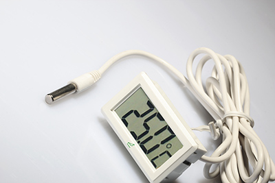 烏龜每年4月初開始攝食,6一8月攝食活動達最高峰。氣溫降至18度以下開始停食,15度以下開始冬眠。一般為每年11月到4月份冬眠,但是每種龜的情況不一樣。喂食的最佳溫度在28-32度之間,如何測量實時溫度?那就需要一只溫度計了。下圖溫度計型號為:DT100S,可以把食品級橡膠線放入烏龜池內,顯示屏放置在烏龜池外,根據實時溫度來進行養殖。