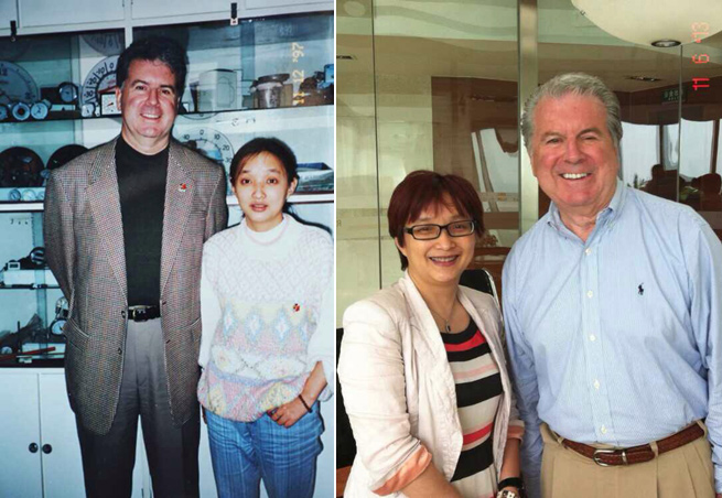 一張是1997年龔總踏入行業第四年拍攝的和美國客戶的照片,當時的照片背景是辦公室的樣品陳列柜,擺著一系列的溫度計和壓力表;第二張的拍攝日期是2013年的7月,不變的是客戶,不變的是主營業務,但是20年的行業成長,我們看到的是不變,背后所寓意著變化才真正是成長的故事,一個企業,團隊和個人共同成長精進的故事。