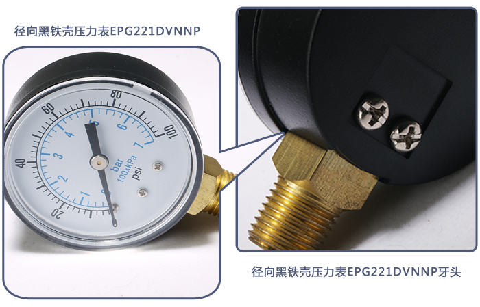 | 型號:EPG221DVNNP | 類型:徑向黑鐵殼壓力表 | 結構型式:徑向型 |