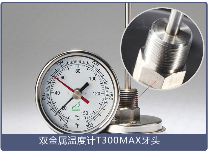 溫度范圍:50-300F&C (可客戶定制)精度:±1.5%指針:雙指針